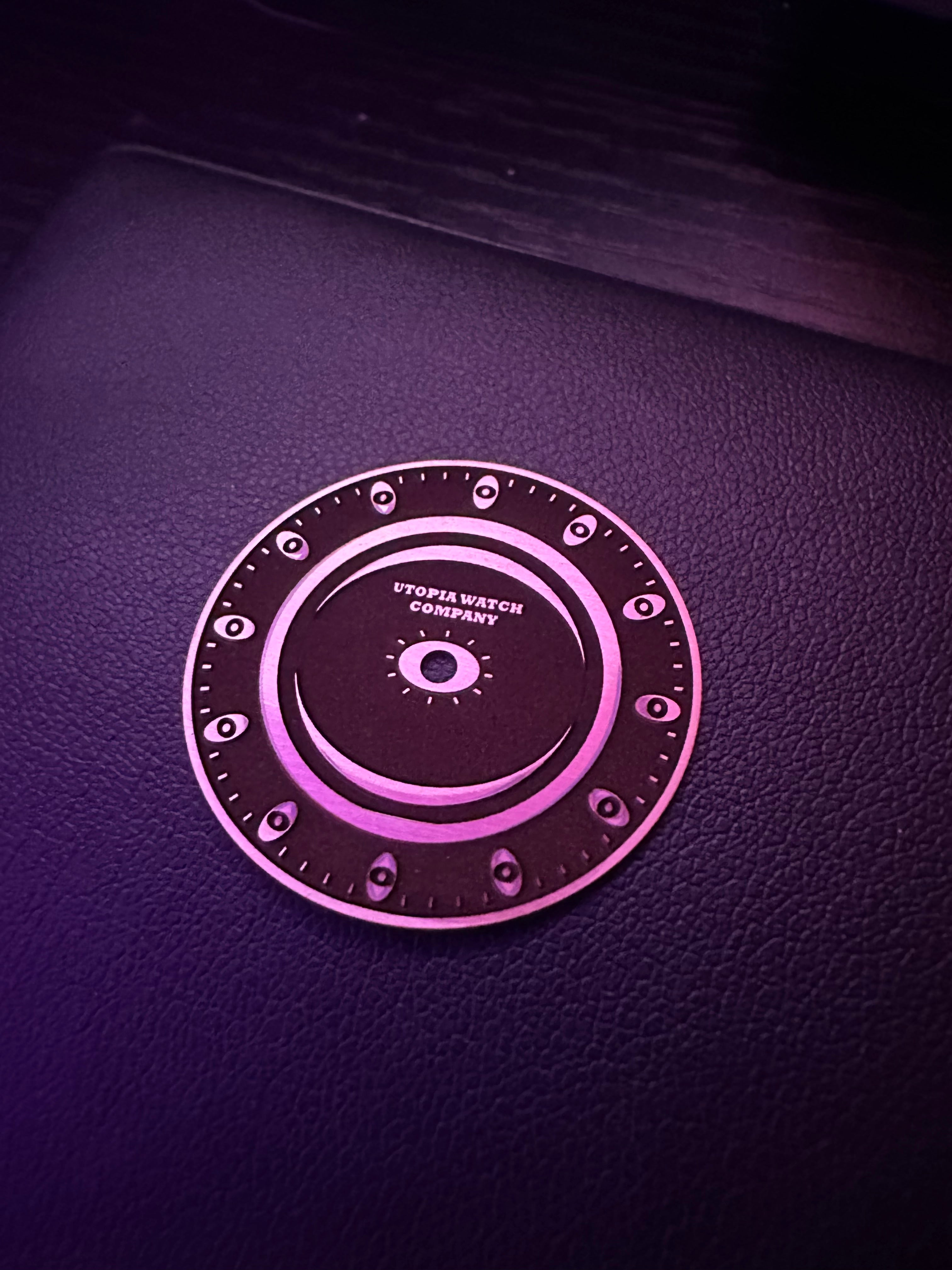 A gray and gold dial with a fractured texture resembling golden ore.